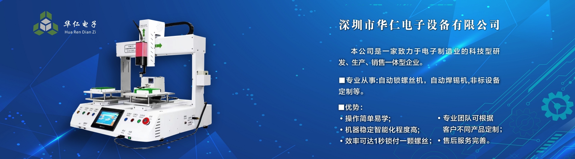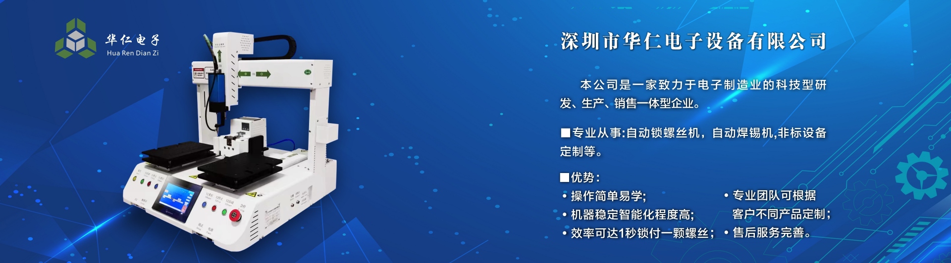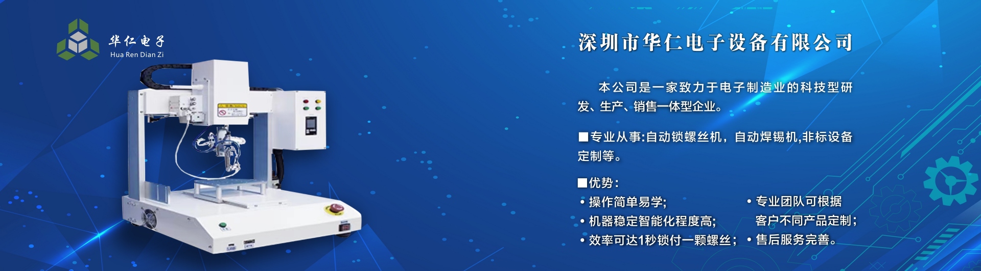 深圳市華仁電子設(shè)備有限公司是一家致力于電子制造業(yè)周邊設(shè)備的科技型研發(fā)、生產(chǎn)、銷售一體的企業(yè),專業(yè)從事:自動鎖螺絲機(jī);自動焊錫機(jī);非標(biāo)設(shè)備定制機(jī)等,公司長期以來在行業(yè)中積累了豐富的經(jīng)驗(yàn),擁有專業(yè)的研發(fā)、技術(shù)、銷售支持工程團(tuán)隊(duì)、各高級技術(shù)人才為客戶提供優(yōu)質(zhì)產(chǎn)品和服務(wù),同時不斷吸取國內(nèi)外先進(jìn)技術(shù),更準(zhǔn)確及時地為客戶提供優(yōu)質(zhì),性價(jià)比高的產(chǎn)品、公司以專業(yè)的售前、售中、售后服務(wù)贏得了客戶的信賴和好評,為客戶提供先進(jìn)自動化設(shè)備一體式解決方案、
